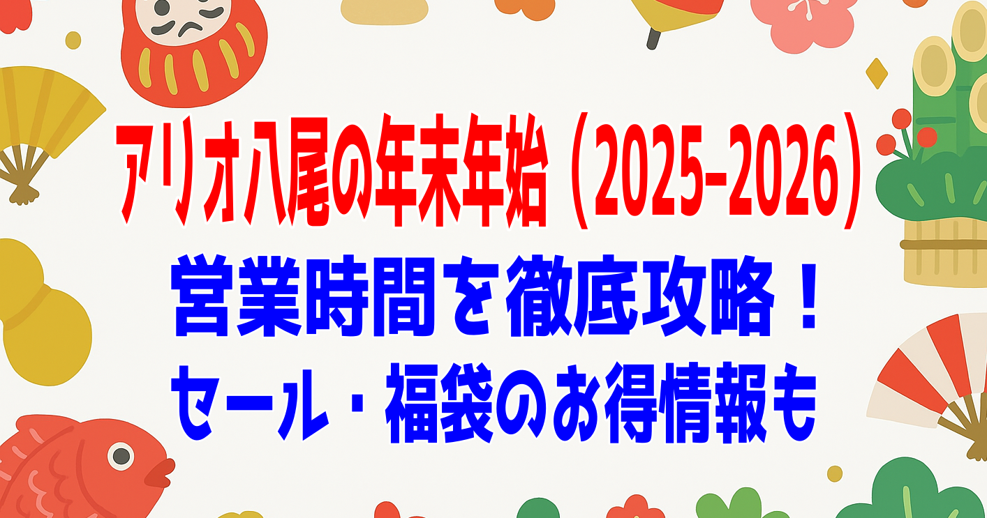 アリオ八尾の年末年始(2025–2026)は、大晦日は早じまい・元日は前倒し開店になりやすく、映画館(MOVIX八尾)は上映時刻が唯一の正です。