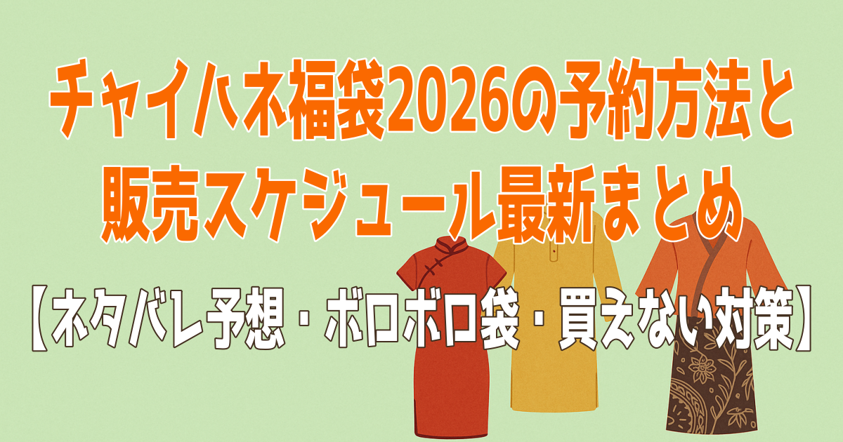 そこでこの記事では、チャイハネ福袋2026の予約方法と販売スケジュール、中身ネタバレから気になる「ボロボロ」ワードまでご紹介していきます。最後までお付き合いいただいて、今年こそは迷わず、好きな柄と一緒に新年を迎えにいきましょう。