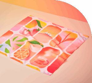 フルーツモチーフの総柄で、敷き布やカップの撮影用のワンポイントに使えます。