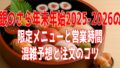 また、年末年始はお好みの持ち帰りに制限が入る案内も出ています。