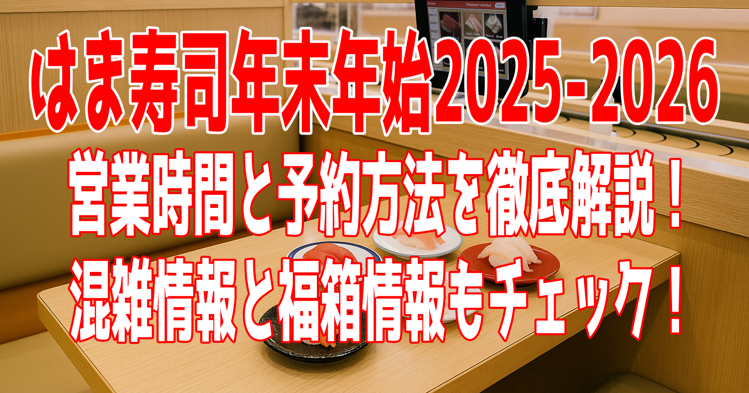 そこでこの記事では、はま寿司の年末年始2025-2026の営業時間の見方、年末予約のポイントと混雑回避テクニック、そして話題のはま寿司厳選12種セットを含む限定メニューはどうなるのか、さらにおせちと福袋情報までご紹介していきます。