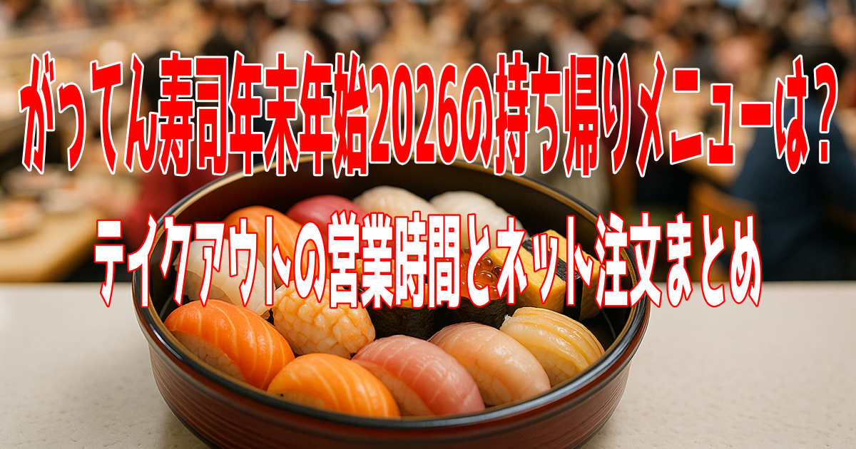 この記事では、がってん寿司公式サイトのお知らせページやテイクアウト専用ページ、それから一部店舗が入っているショッピングセンターのショップニュースなどを参考にしながら、年末年始の営業時間と持ち帰りメニューの動きを整理しました。