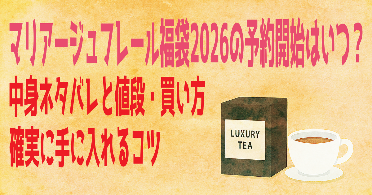 この記事では、マリアージュ フレール福袋2026の予約方法、購入ルートの違い(オンラインと店頭)、過去3年の中身と口コミ傾向、そして2026年版がどうなりそうかまでを、まとめてご紹介していきます。