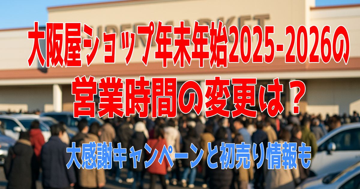 そこでこの記事では、2025年から2026年における大阪屋ショップの年末年始の営業時間や休業日、さらに気になる「大感謝キャンペーン」についてご紹介していきますね。