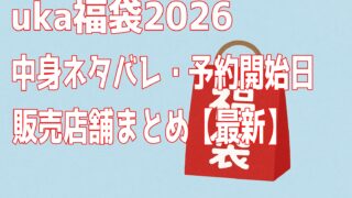 福袋 uka福袋2026|中身ネタバレ・予約開始日・販売店舗まとめ【最新】 uka福袋2026の最新情報を徹底解説!予約開始日や販売スケジュール、中身ネタバレ、口コミ評判をまとめました。過去の「しよウカ袋」内容から2026年版の傾向も考察します。 2025.10.06 福袋